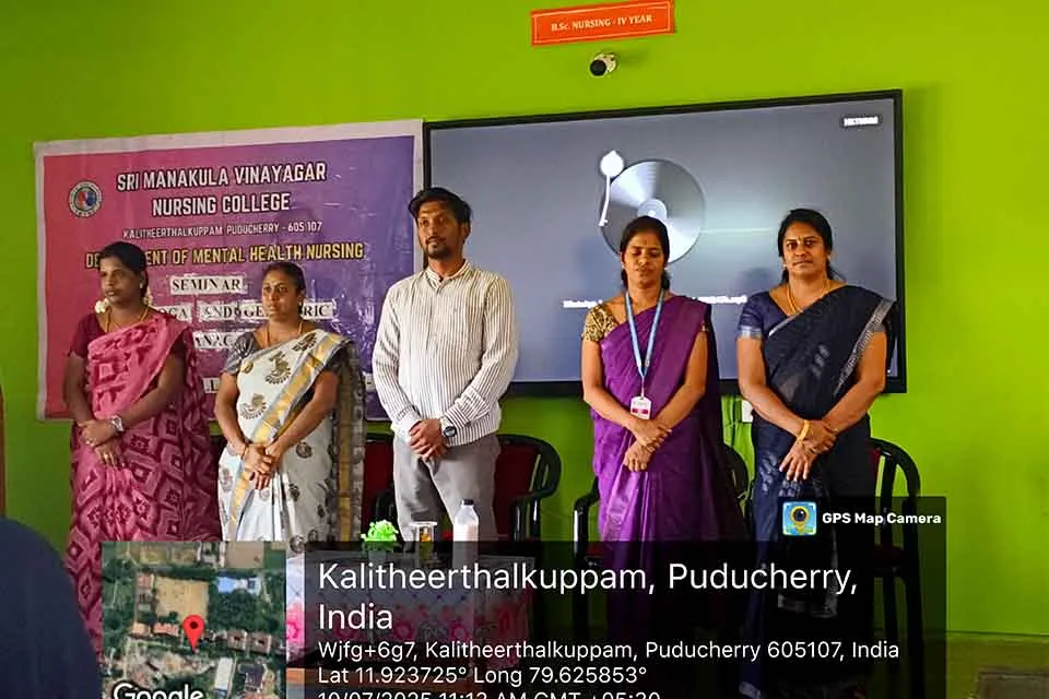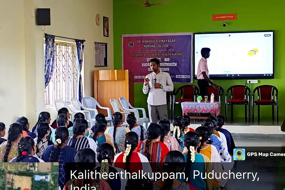 A seminar on “Yoga and Geriatric Management” was organized in Lecture Hall VII, SMVNC, on 10.07.2025. Mr. Swaroup Ramanan Alias Premkumar M., provided practical training on yoga for geriatric well-being, benefiting around 98 students.