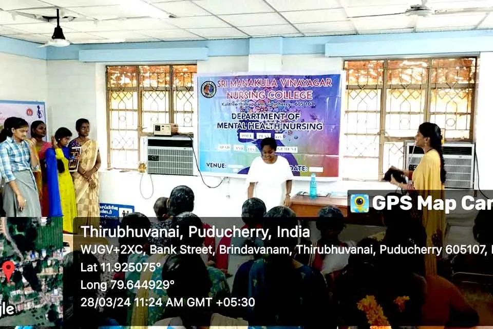 A role play on “Bipolar Affective Disorder & Its Management” was organized at Thirubuvanai PHC on 28.03.2024. The general public actively participated, interacting with students and faculty to clarify their doubts. The programme benefited around 50 people