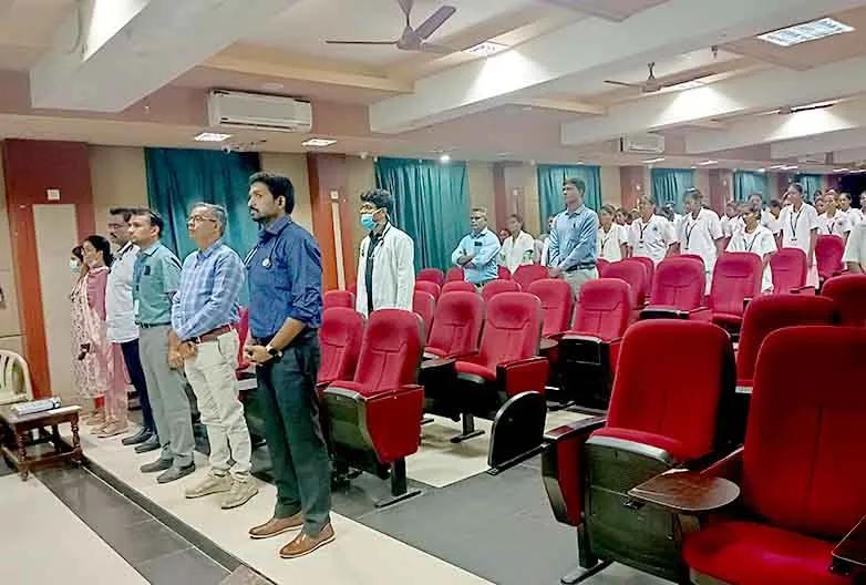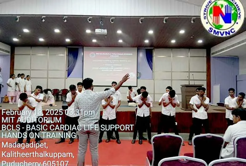 From 1st – 2nd July 2024, “Hands on Training – Basic Cardiac Life Support” was organized at Seminar Hall, SMVNC. The 2022 – 2026 batch students received practical training on BCLS conducted by Ms. Rehana Ansari, BLS Regional Trainer (South), Delta Healthcare Pvt. Ltd. Around 100 students got trained through this session.