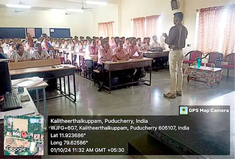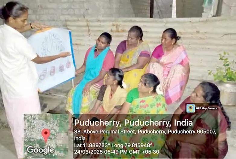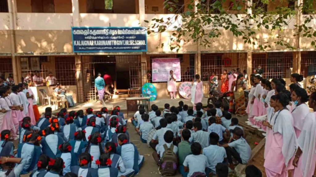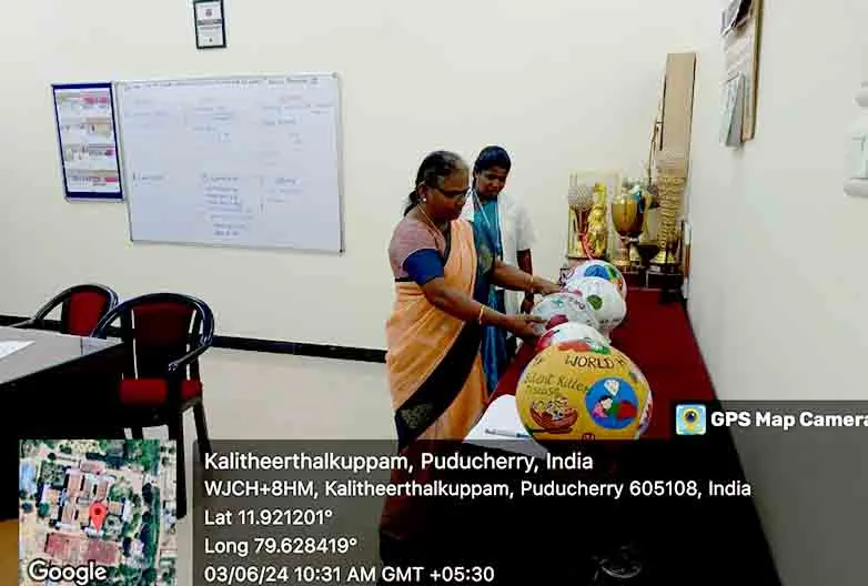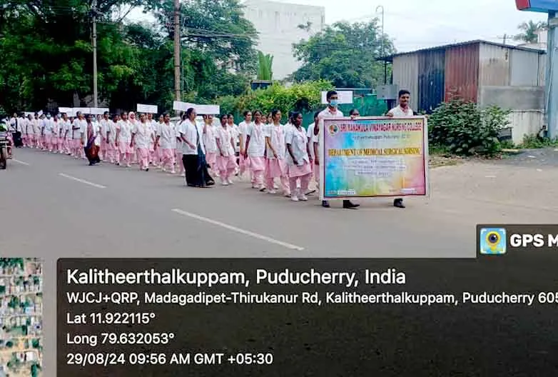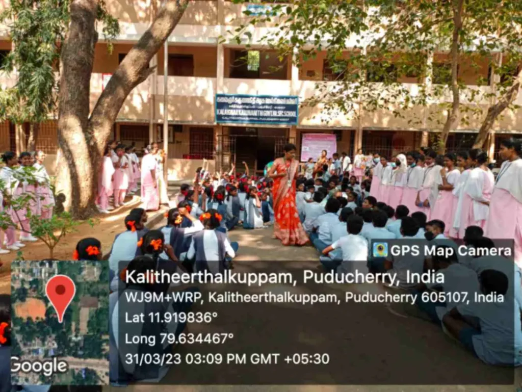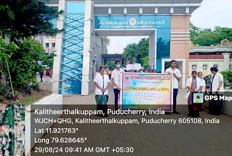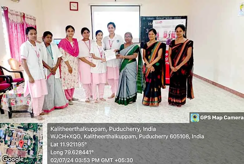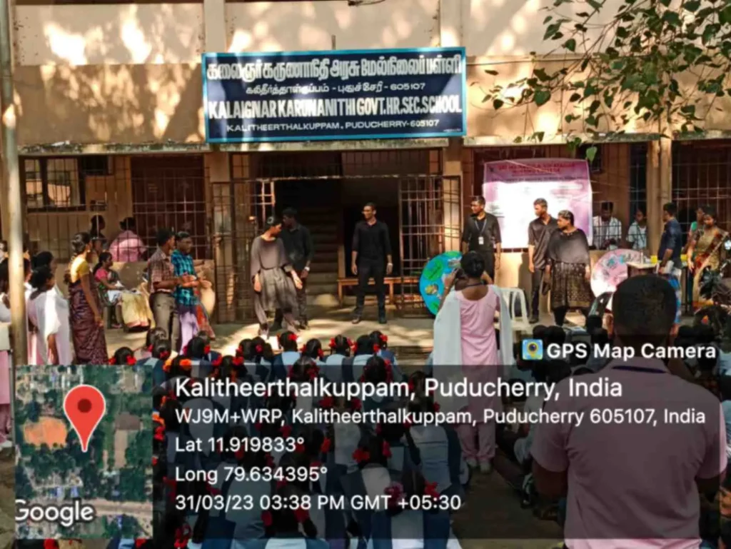 On 31st March 2023, under the theme Sustainable development under the concept of life, an awareness rally on Global warming, Tree plantation, Orientation programme on Health Schemes for Teachers, Role play on Hand hygiene, & Guest lecture on Importance of Quality education was organized at Kalaignar Karunanithi Govt. Higher Secondary School, Madagadipet, Puducherry. Around 100 nursing students participated and benefitted 150 school students, 10 school teachers, 300 public people