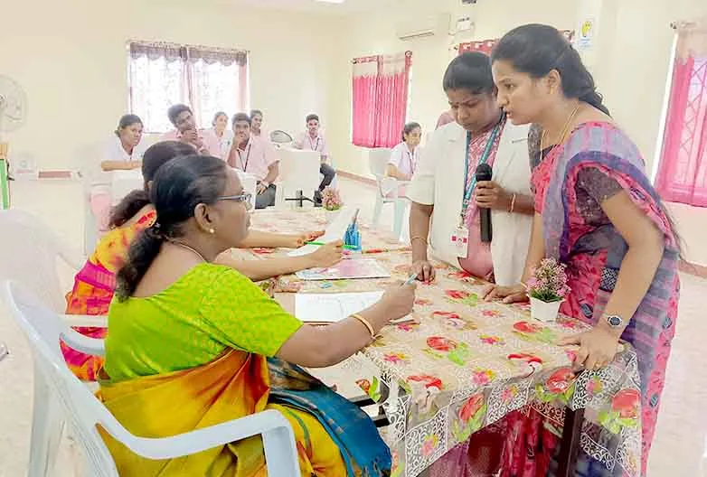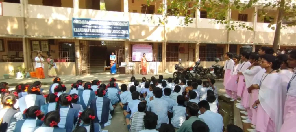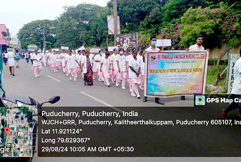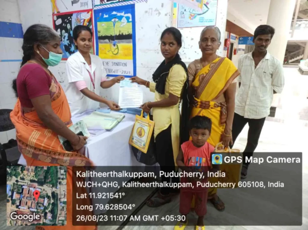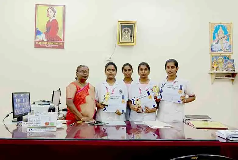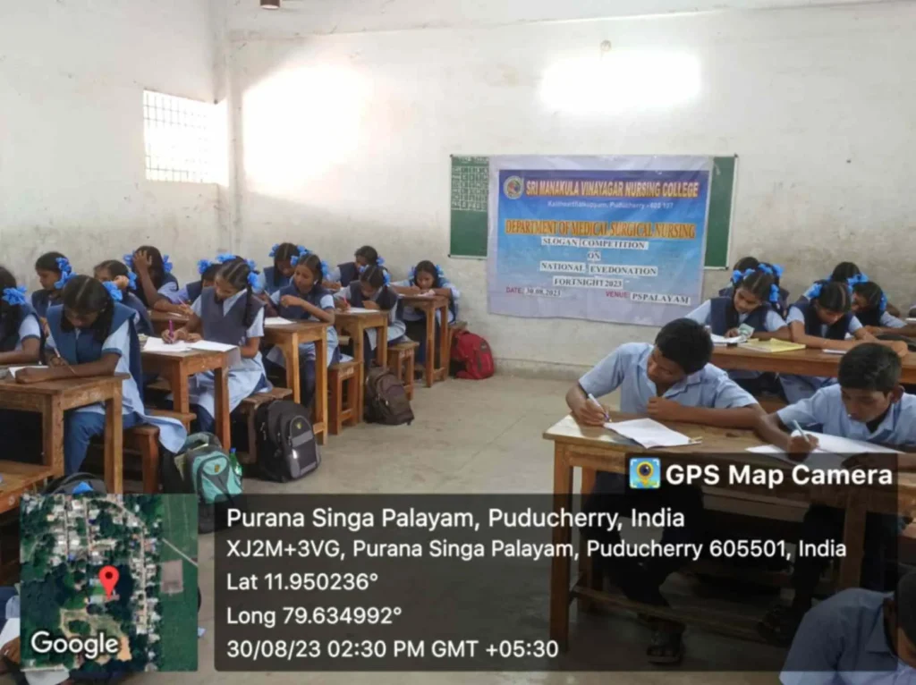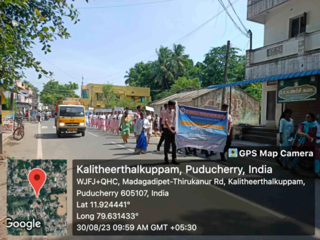 From 25th August to 8th September 2023, the National Eye donation Fortnight Week celebration was organized under the theme, “Make Eye donation, a family tradition”. Eye donation registration stall, awareness rally, Guest lecture on Importance of Eye donation by Dr. A. Sripal, Assistant Professor, Dept. of Ophthalmology, Slogan & Essay competition, and Mime show was carried out at our College campus and Pavendar Bharathidasan Hr. Sec. School, PS palayam. Around 100 nursing students participated, and 130 school students, 10 school teachers, 300 public got benefitted through this programme.
