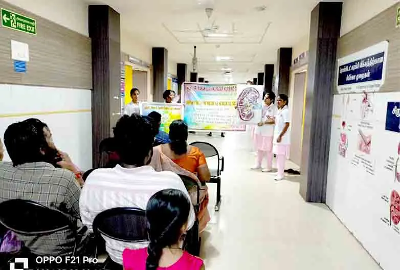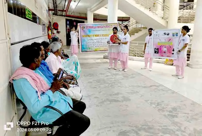 On 9th March 2024, Health awareness activity was carried out under the theme “Kidney Health for all advancing equitable access to care and optimal medication practice” at Nephrology OPD, Dialysis unit, SMVMCH. Around 250 public gained awareness through health education.