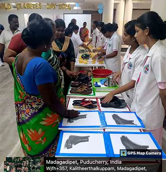In commemoration of World Diabetes Day 2024, Health stall regarding Diabetic diet, diabetic foot care, and diabetic screening and Awareness rally, was conducted from 11th – 13th November 2024 at SMVMCH. Around 100 nursing students, 300 public people got benefitted through this programme.