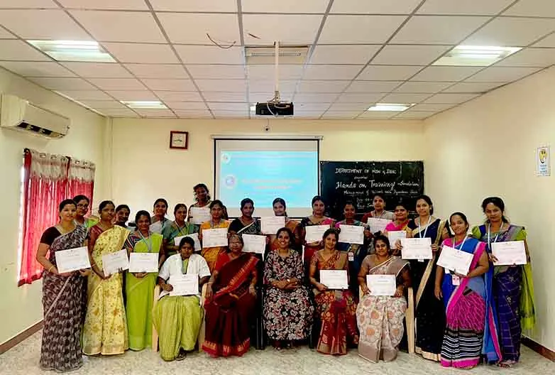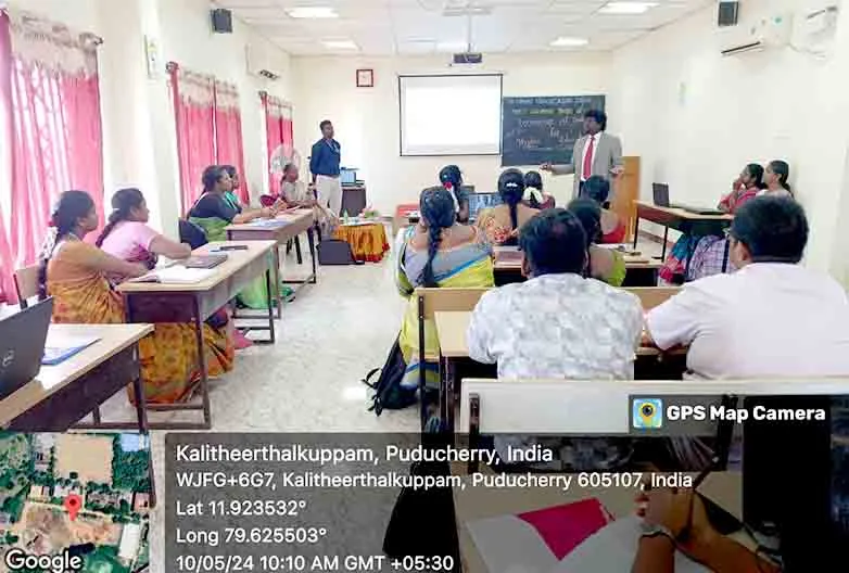 On 10th & 11th May 2024, Faculty Development Programme on “Leveraging AI tools in Higher Education” was organized at Seminar Hall, SMVNC. DR. Vimal Jerald, Asst. Prof, St. Joseph’s College, Tiruchirapalli, facilitated the sessions benefitting around 30 SMVNC faculties & 10 MNC faculties.