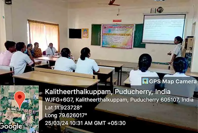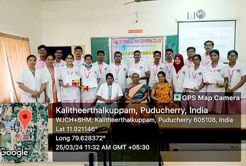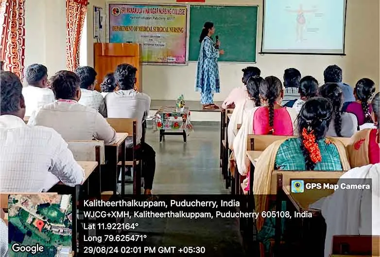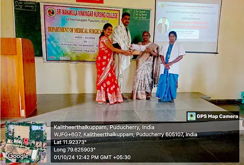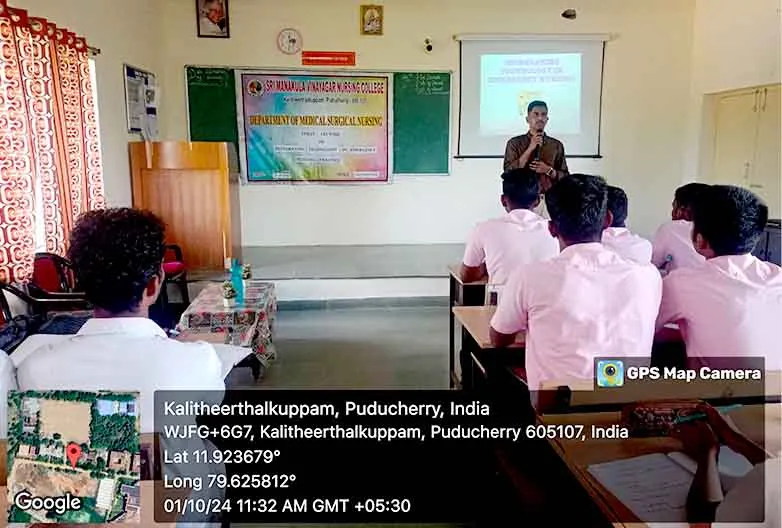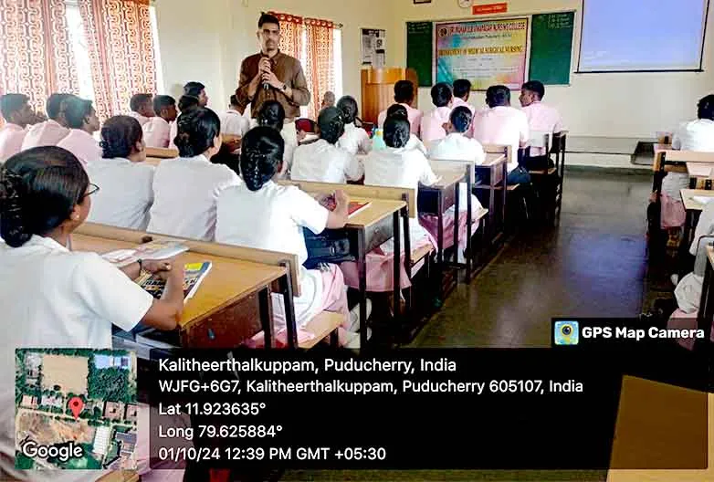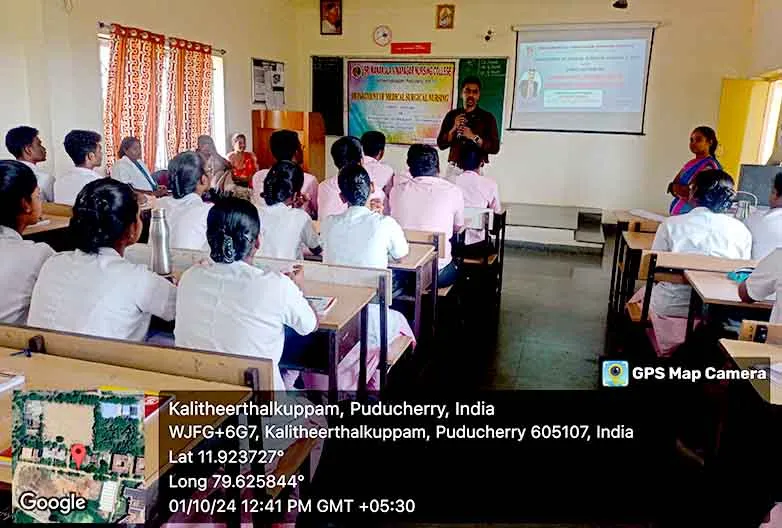 On 29th August 2024, a Guest lecture on “Integrating Technology into Emergency Nursing Practice” was carried out by DR. P. Gophi, Registered Nurse Band 5, Emergency Department, Portsmouth Hospital University NHS Trust at Lecture hall, SMVNC. Around 100 nursing students got benefitted through this lecture.