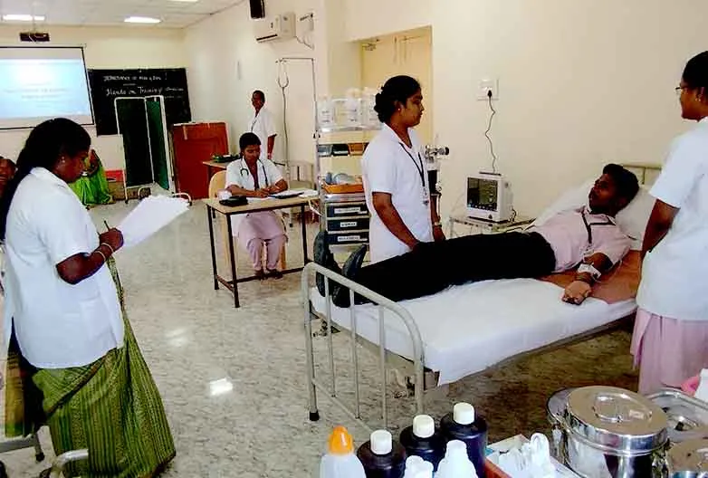 Medical Surgical Nursing Lab is available for both UG and PG students. The lab is well equipped with adequate number of International Mannequins Simulators that help for class room teaching with skill learning where the students get hands on experience for various procedures which are available in INC Curriculum