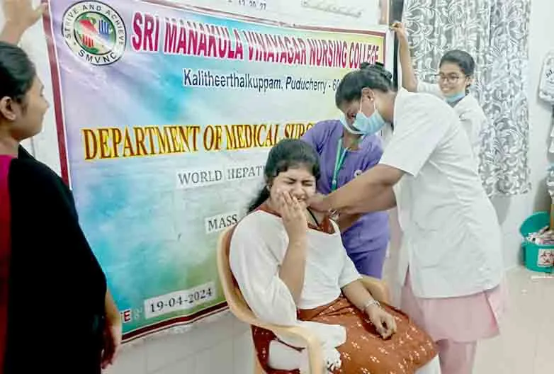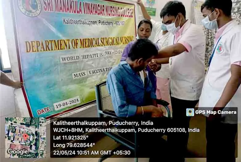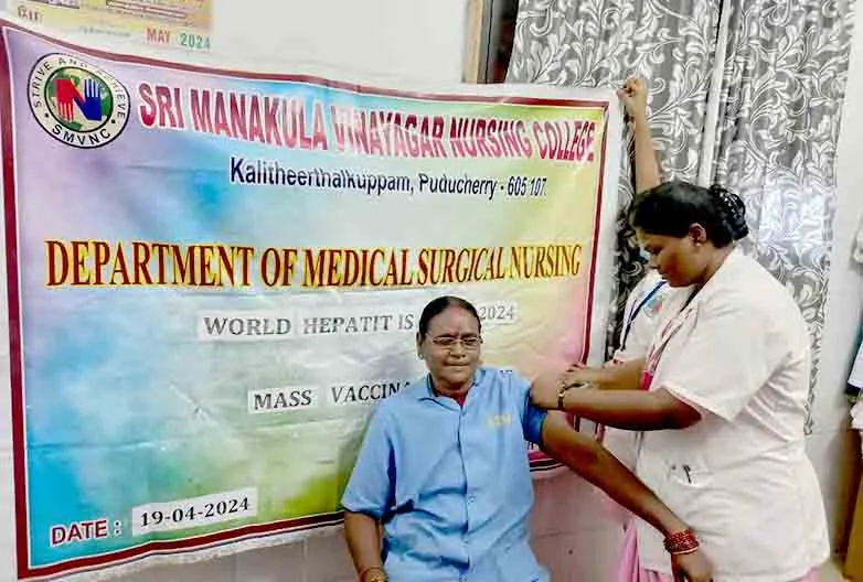 On 19th April 2024, “World Hepatitis Day 2024” was celebrated under the theme, “It’s time for action” at SMVMCH. Our students vaccinated around 100 B. Sc. (N) I year students and 20 sanitary workers.