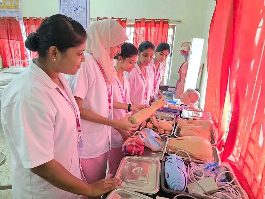 Simulation corner and self-learning desk is designed to give students training for basic nursing procedure to advanced procedures like Venipuncture, Oxygen Administration, Tracheostomy Care, Ostomy care, Suturing, CPR, and Endotracheal Intubation. Students are given hands on training in the lab before they practice in the actual clinical area
