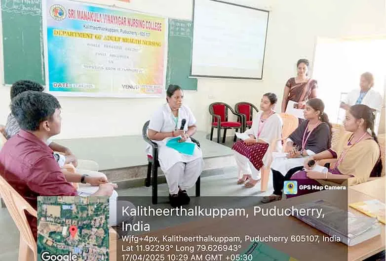 On 17th April, 2025 Panel discussion on “Hepatitis – Know It, Confront It” was moderated by Mrs. N. Rajalakshmi, Deputy Nursing Superintendent, SMVMCH at Lecture Hall, SMVNC. Around 100 nursing students got benefitted.