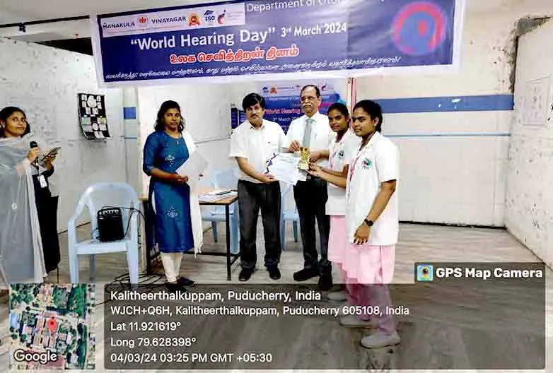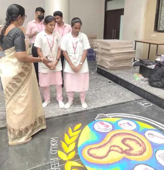 On 4th March 2024, in commemoration of “World Hearing Day”, our students participated in the Rangoli competition under the theme “Changing mindsets: Let’s make ear and hearing care reality for all” at SMVMCH and the winners were awarded with prizes.