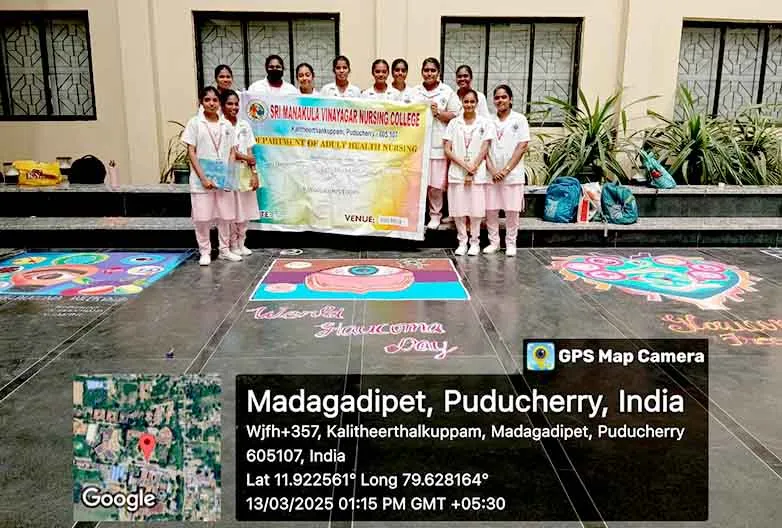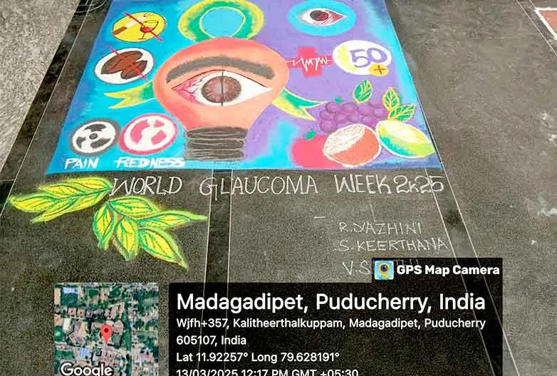 On 13th March, 2025, Rangoli competition on Glaucoma Awareness week was conducted at our college campus. Around 15 students benefitted through this event.