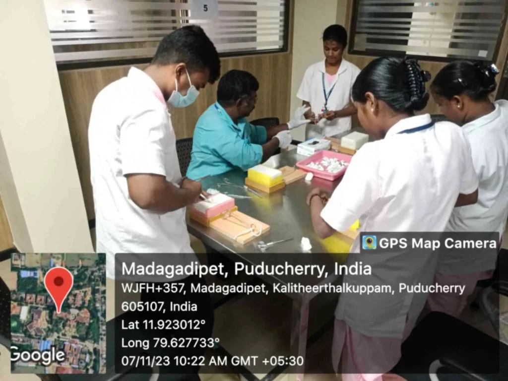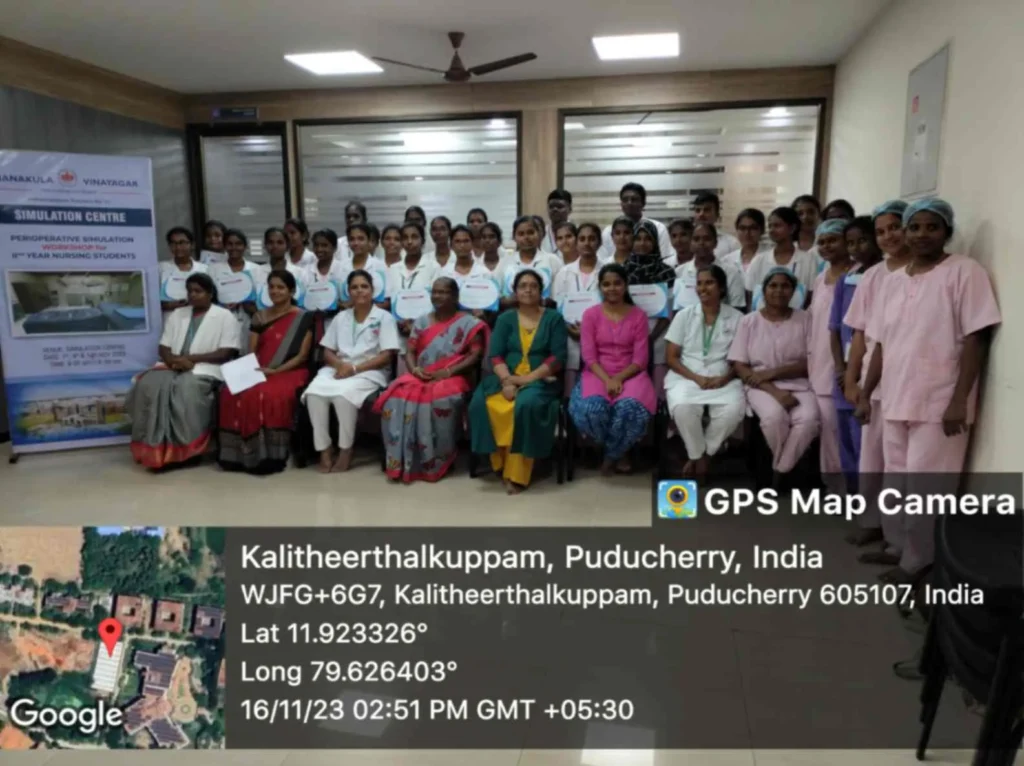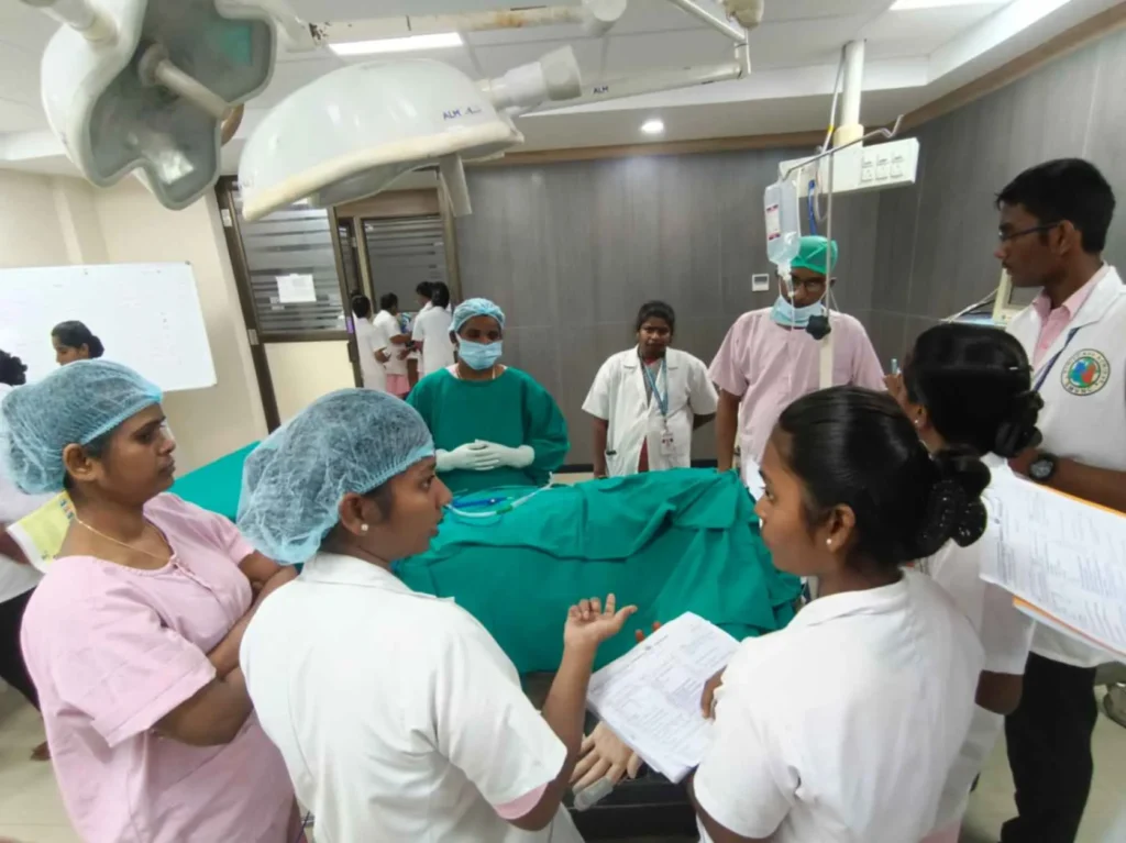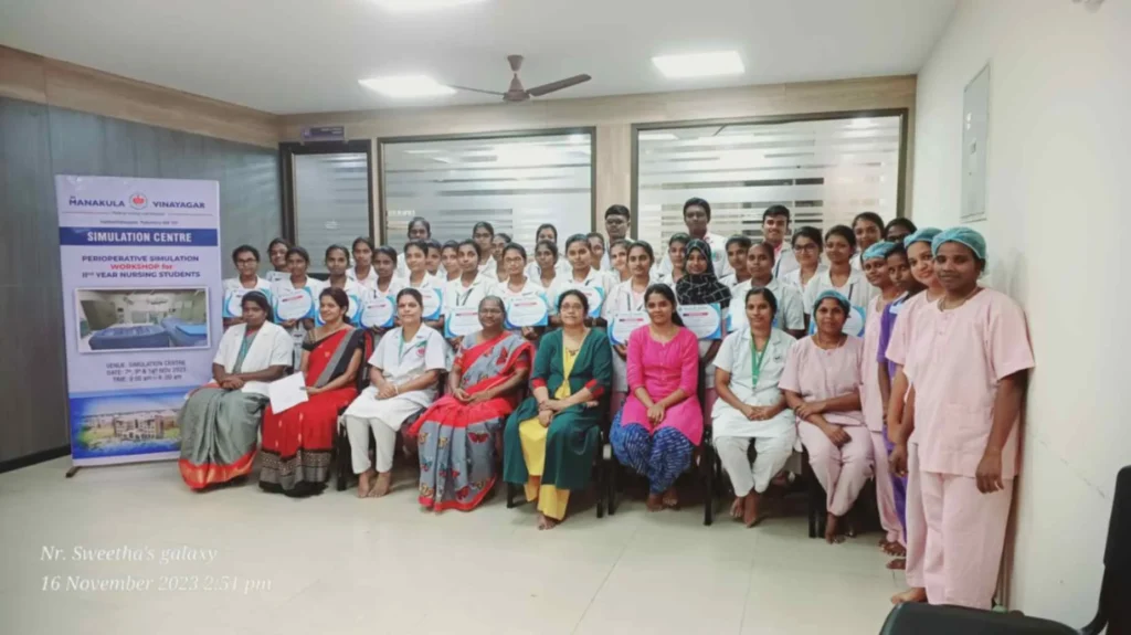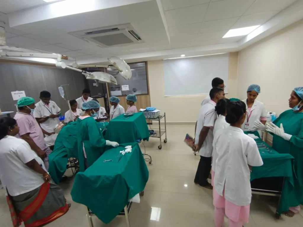 On 4, 7, 16th November, 2023, Simulation training programme on “Peri-operative Skill training” was conducted at Simulation lab. 95 B. Sc. (N) students got benefitted through this simulation.