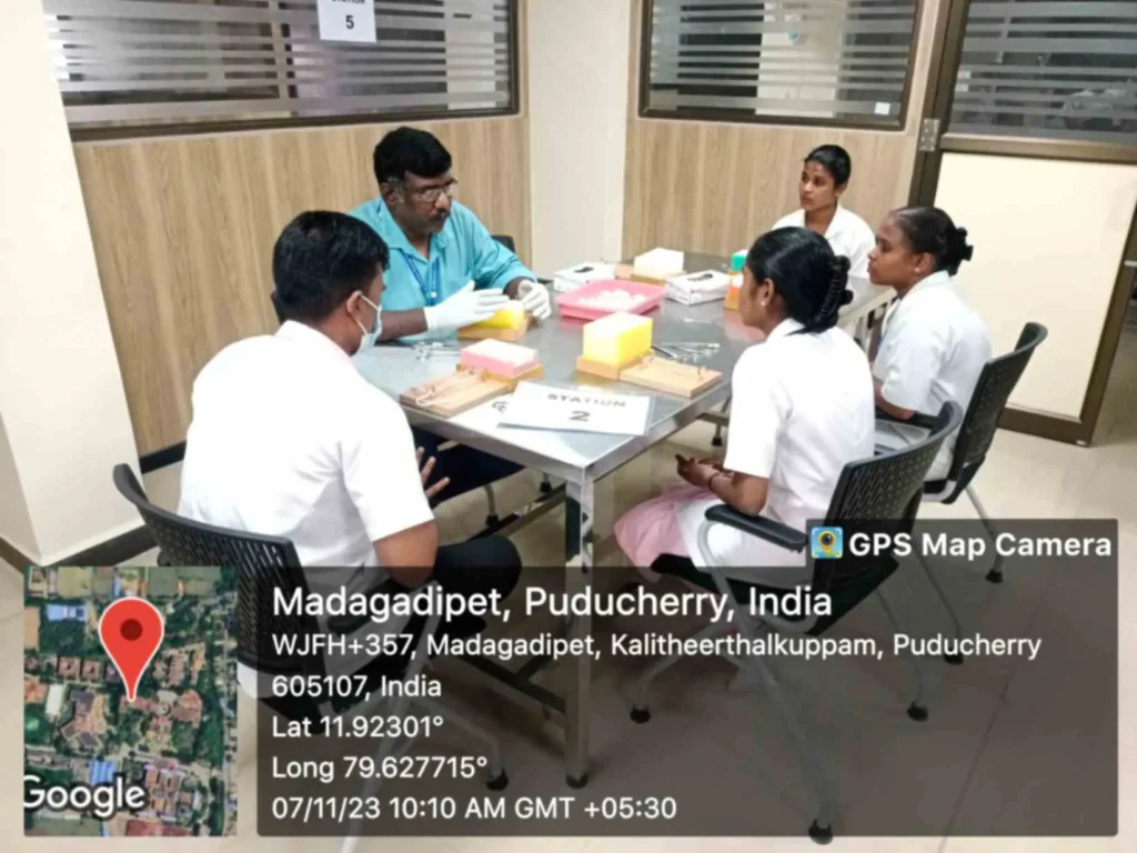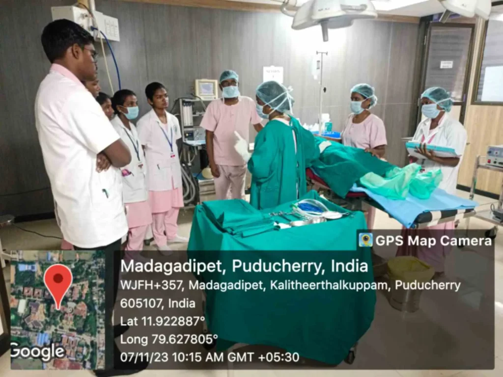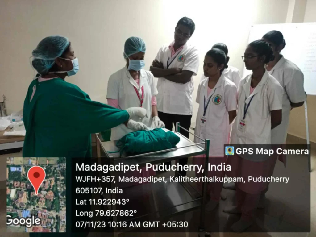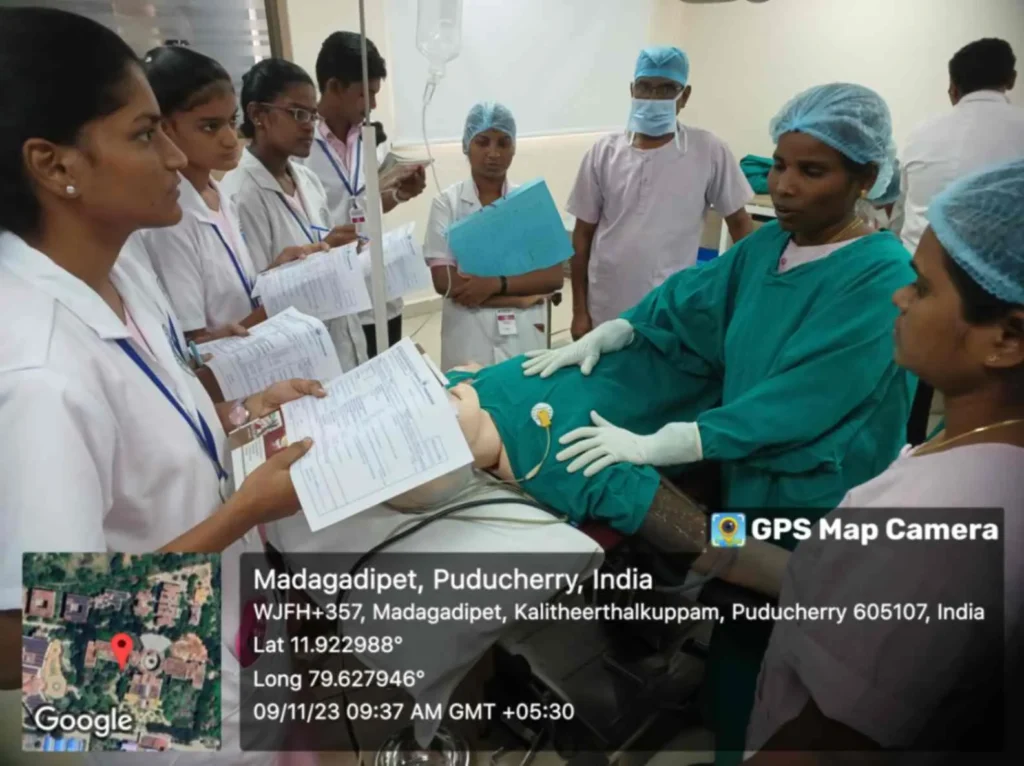 On 4, 7, 16th November, 2023, Simulation training programme on “Peri-operative Skill training” was conducted at Simulation lab. 95 B. Sc. (N) students got benefitted through this simulation.