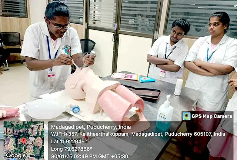 On 28, 29, 30th January 2025, Simulation training on “Endotracheal intubation, Central Venous Pressure monitoring” was conducted at Simulation lab. Around 100 nursing students got benefitted through this programme.