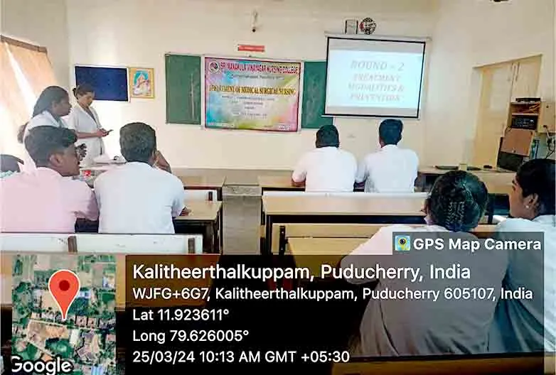 On 25th March 2024, in commemoration of “World Tuberculosis Day” a Quiz competition was conducted at Lecture Hall, SMVNC”. Around 105 nursing students gained awareness through this programme.