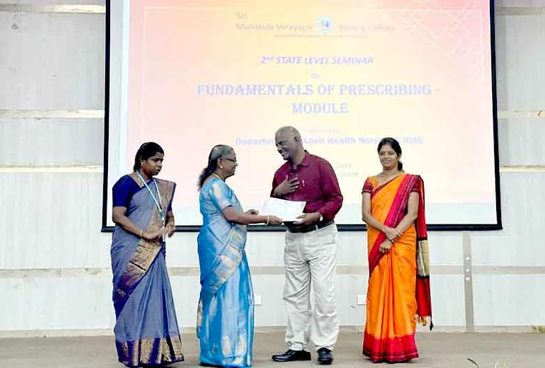 On 3rd September 2024, the 2nd State level seminar on “Fundamentals of Prescribing module” was organized at College auditorium. 8 expert resource speakers delivered insightful sessions on key aspects of prescribing in Pharmacology. 100 SMVNC students and 100 Mailam Nursing College students gained knowledge through the sessions.