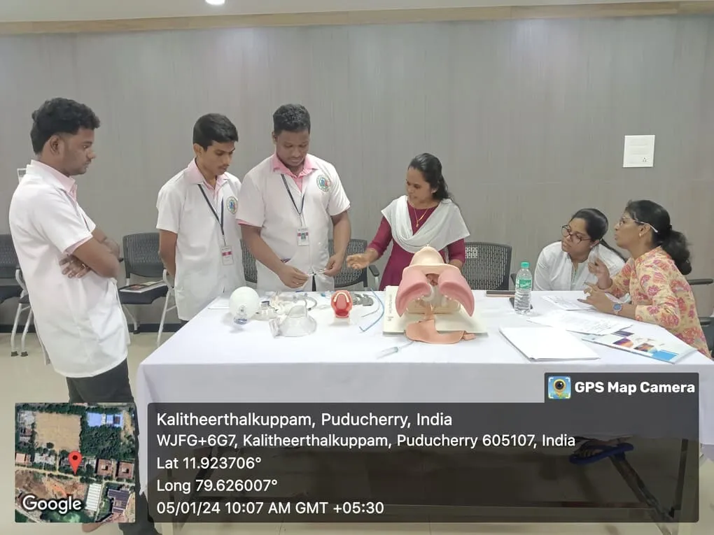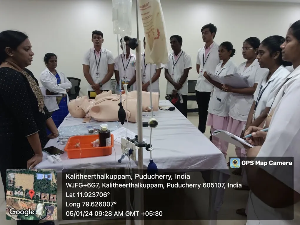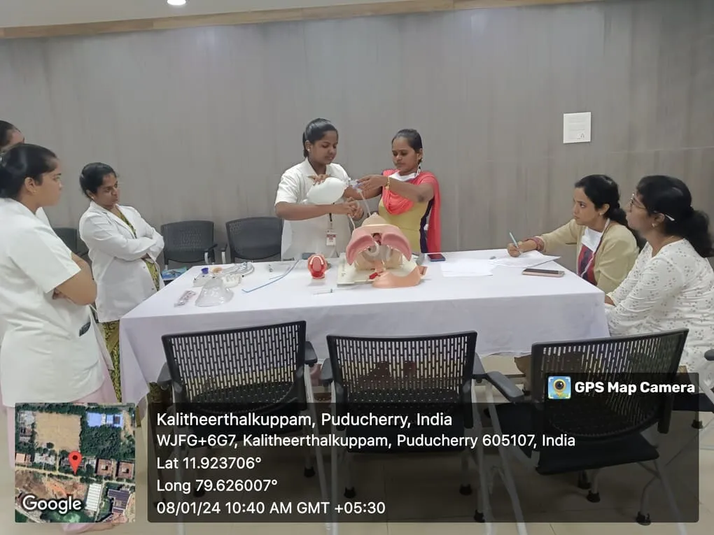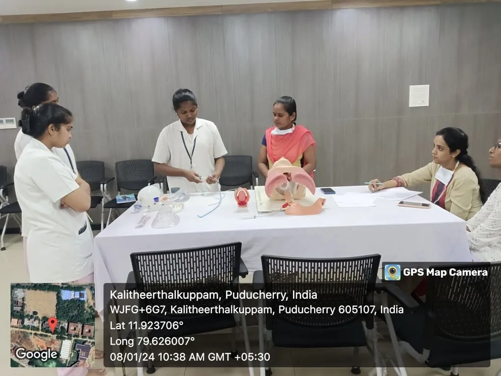 On 4, 5, 8th January 2024, Simulation training programme on “Endotracheal intubation, Central Venous Pressure monitoring” was conducted at Simulation lab. Around 100 nursing students got benefitted through this programme.