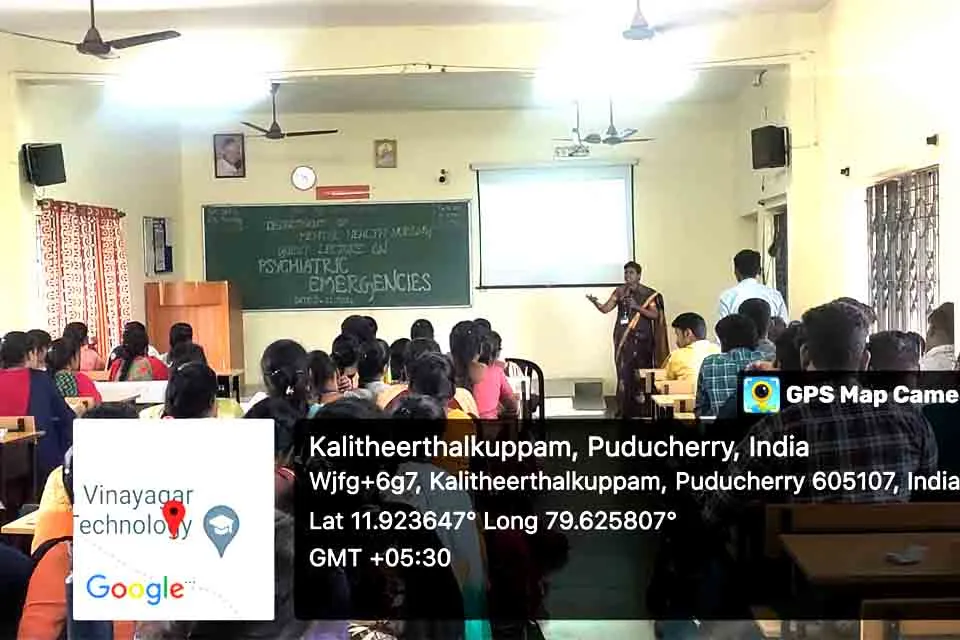 A Guest Lecture Programme on “Psychiatric Emergencies” was organized in the Lecture Hall, SMVNC, Puducherry, on 26.11.2024. Dr. R. R. Kavitha shared her valuable knowledge on various psychiatric emergency conditions. The session benefited around 107 students.